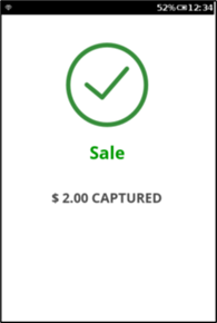 Transaction is approved screen. After the transaction is complete, the device will return to the Idle Screen. |